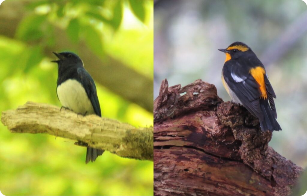 春から秋にかけて日本で繁殖する夏鳥。その代表種と言えば、なんといっても瑠璃色のオオルリと黄色のキビタキでしょう。オオルリは木のてっぺんで囀ることが多く、キビタキは森の中に溶け込むようにいます。どちらも姿だけでなく囀りが美しいのが特徴です。