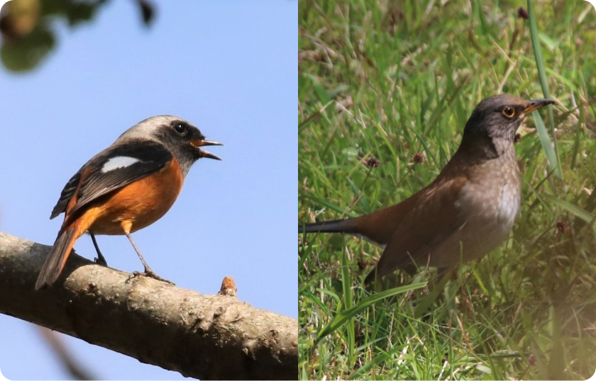 秋から春を表丹沢で過ごす冬鳥。出会える機会が多いのはジョウビタキです。黒い羽に白い紋、オスはお腹がオレンジ色なのが特徴です。一方、すぐそこにいるはずなのに、なかなか姿が見られないのがシロハラです。落ち葉をカサコソ探る音が聞こえたら、探してみてください。