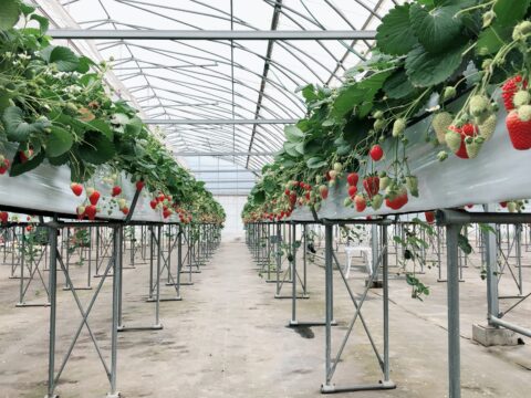 立ったままでいちご狩りが楽しめる高設土耕栽培を実施。通路はベビーカーや車椅子も通れる広さです。 さちのかの”コク”と”酸味”を受け継ぐ紅ほっぺと、さちのかの約1.3倍、とよ […]