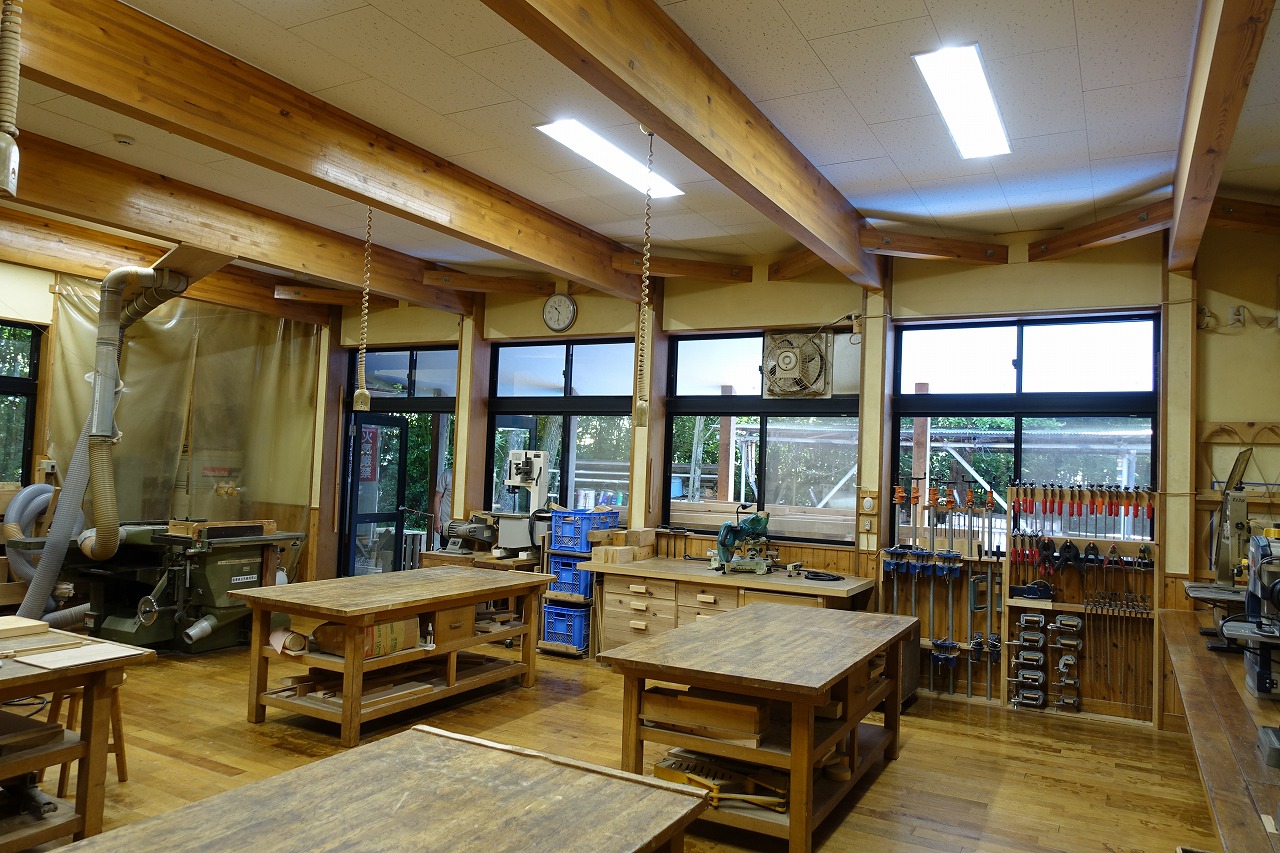 地域の林業者の活動を促進するとともに、森林や林業に対する理解を深め、林業の活性化を図るために設けられた施設です。 地域の自然や林業などに関する研修会や学習会を開く研修室や、糸ノコ盤やノコギリなどの機械・道具を使って手作り木工体験ができます。木工指導員が、機械の使い方や手作り木工のアドバイスをします。