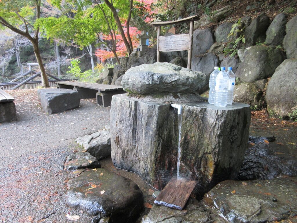 全国名水百選に選ばれた秦野のおいしい水が湧き出る「葛葉の泉」に到着。ここからは車両も通行します。ややきつい勾配のため、注意して歩きましょう。「葛葉の泉」に公衆トイレがあります。