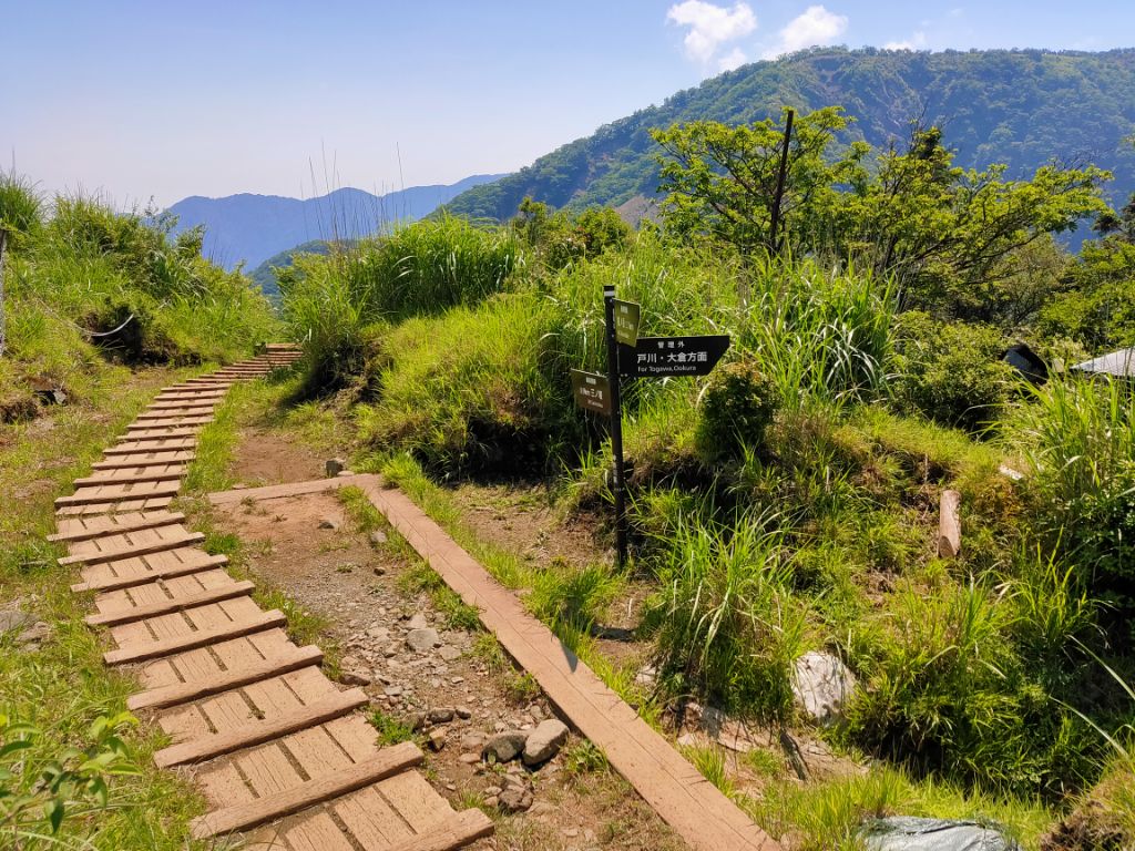 ヤビツ峠から「県道70号」を経由し、まずは「三ノ塔」を目指します。三ノ塔までは階段状の道や岩だらけの道がありますが、初心者でも歩きやすいコースです。