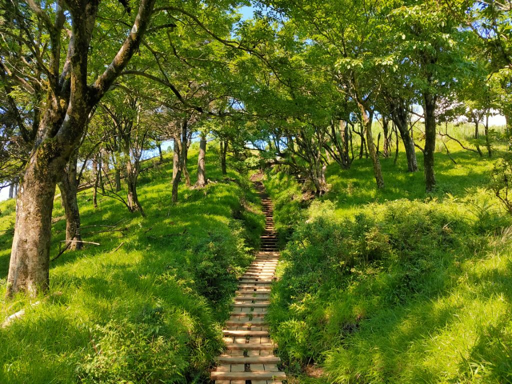 烏尾山から行者岳までは平たんな道もあり、比較的歩きやすい登山道ですが、行者岳山頂を過ぎると、急傾斜の鎖場のピークを迎えます。全集中して進みましょう。
