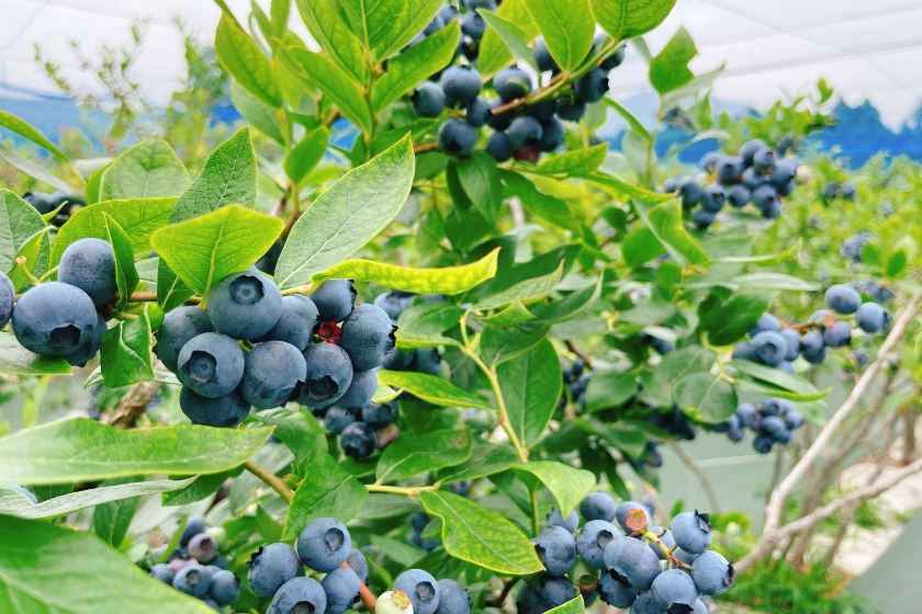 7月上旬から9月上旬まで摘み取りできます。ブルーベリーのほかにも、春はいちご狩り、秋は落花生やさつまいもの掘り取りなど季節に合わせて収穫体験を楽しみましょう(要予約)。