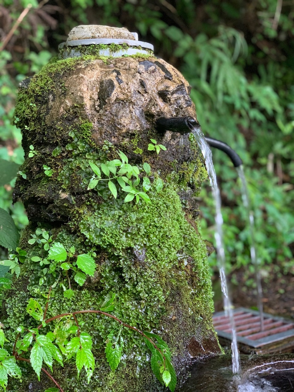 水無川の上流にある湧水で、水汲み場より50m程度上流の山腹に竜の形をした岩があることから、水をつかさどる「竜神」が宿ると伝えられる場所です。 昔から行者や猟師などが喉を潤し、一息ついた泉として知られています。途中から未舗装の道となりますが、自動車でも訪れることができます。