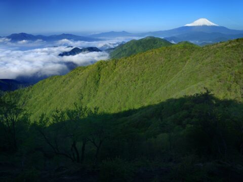 ヤビツ峠から登山道を登っていくと、展望台のある山頂に到着します。そこからは、大山や表丹沢の山並み、富士山などが眺められます。山頂からいったん下り、少し登り返すと、なだらかな草原の道になります。振り返ると、草原の向こうに岳 […]